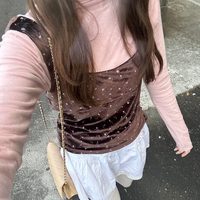 柔らかなベルベット生地で仕立てたこのビスチェは、ガーリーなスタイルにぴったりなアイテムです♡ カジュアルなファッションにもおすすめです。そして韓国っぽさを感じさせるデザインが魅力です。 リラックスした着心地を実現しており、デイリーユースにも最適!デニムやスカートと合わせて、色々なコーディネートを楽しめます。特別なお出かけにも、日常のスタイルにも大活躍する一枚です♡